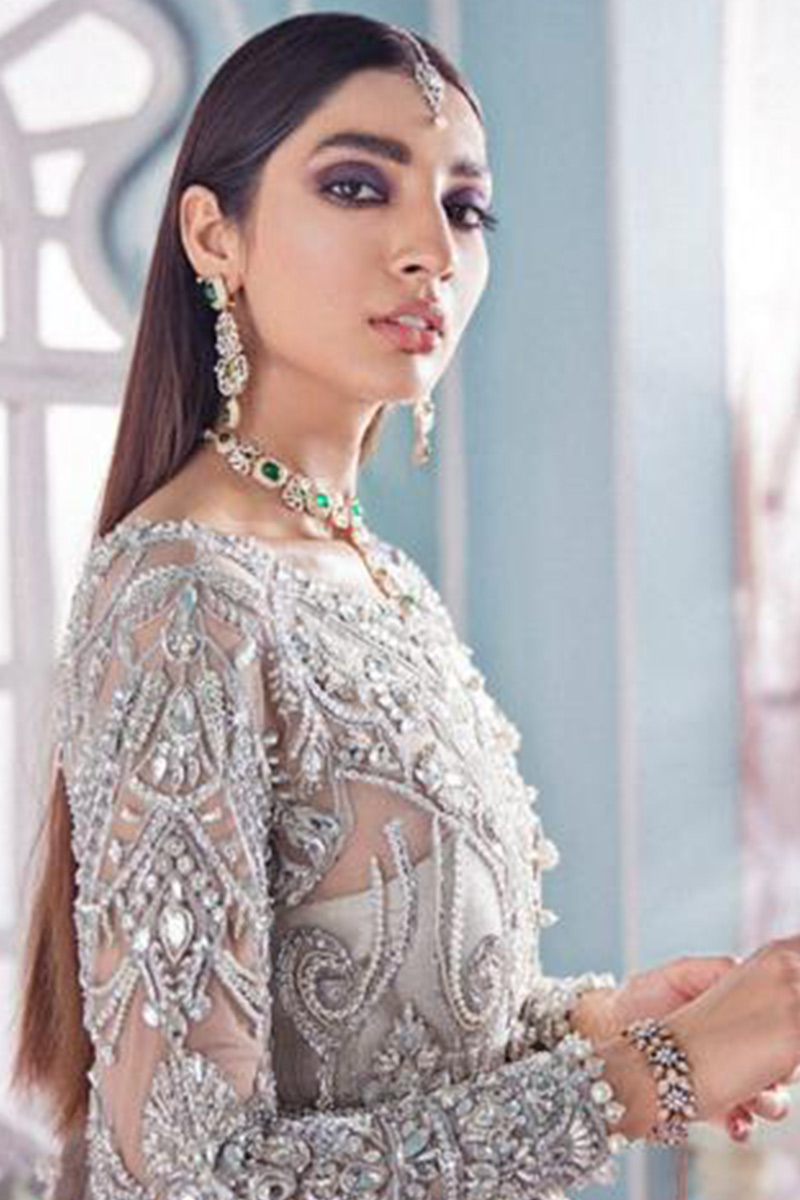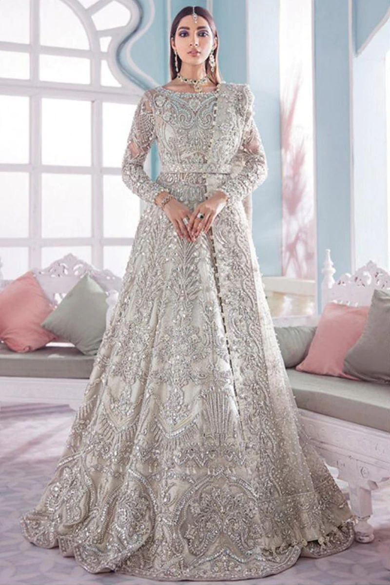 Light Grey Silver Zari Embroidered Organza Bridal Anarkali Salwar Suit